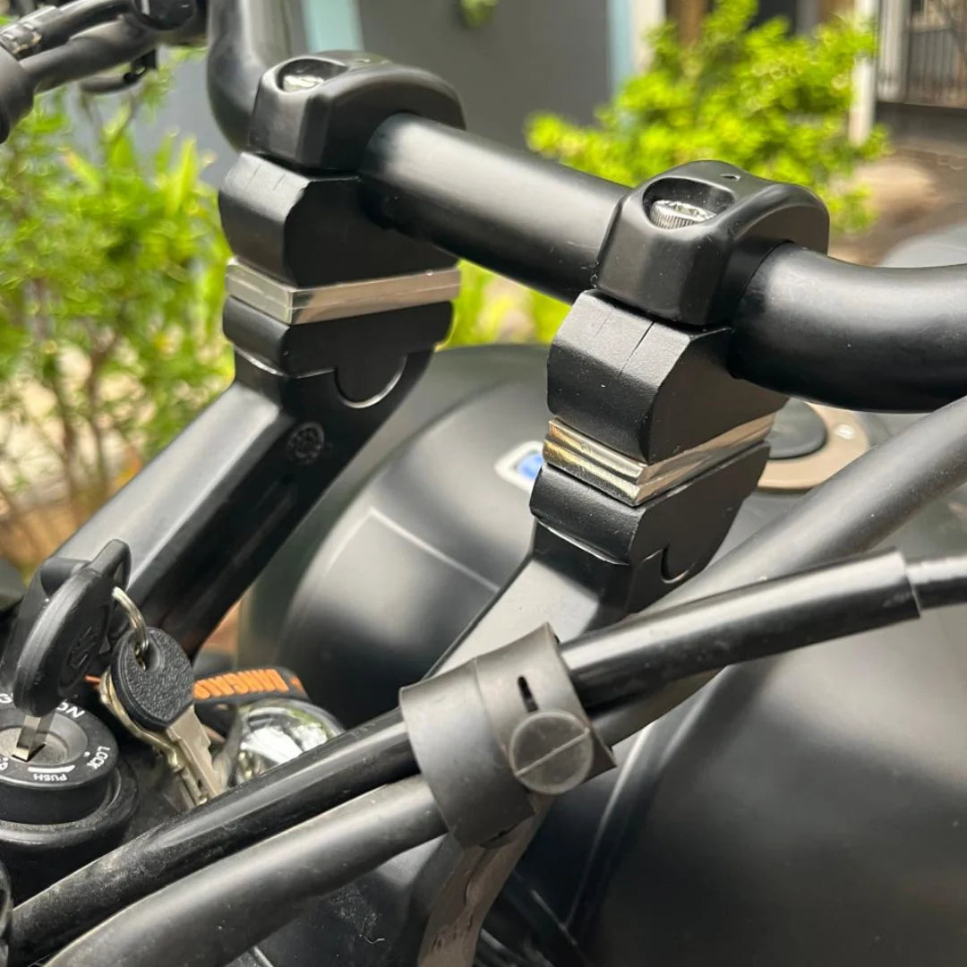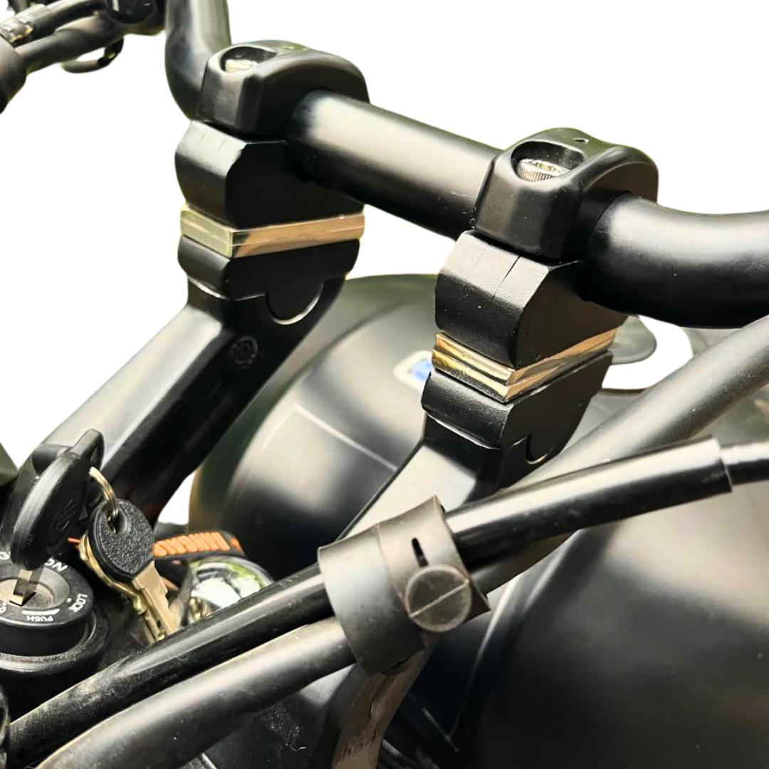 Upgrade your Harely Davidson X440 with the AeeDEA Handlebar Raisers – a precision-cut solution designed for optimal alignment and enhanced riding comfort. Our innovative handlebar extension offers a seamless fit, providing a 48 mm reach extension without the need for cable changes, making it a cost-effective and ergonomic choice for riders.
