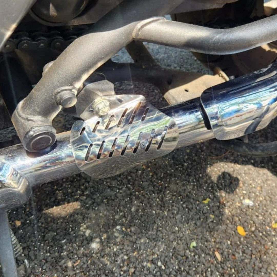 Shield for the area on the exhaust pipe that comes in contact with your shoes
