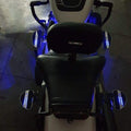 d. Chrome Detail with LED – The footboard come with SS strip in the middle, and has an embedded water proof LED which glows when the bike is switched on.