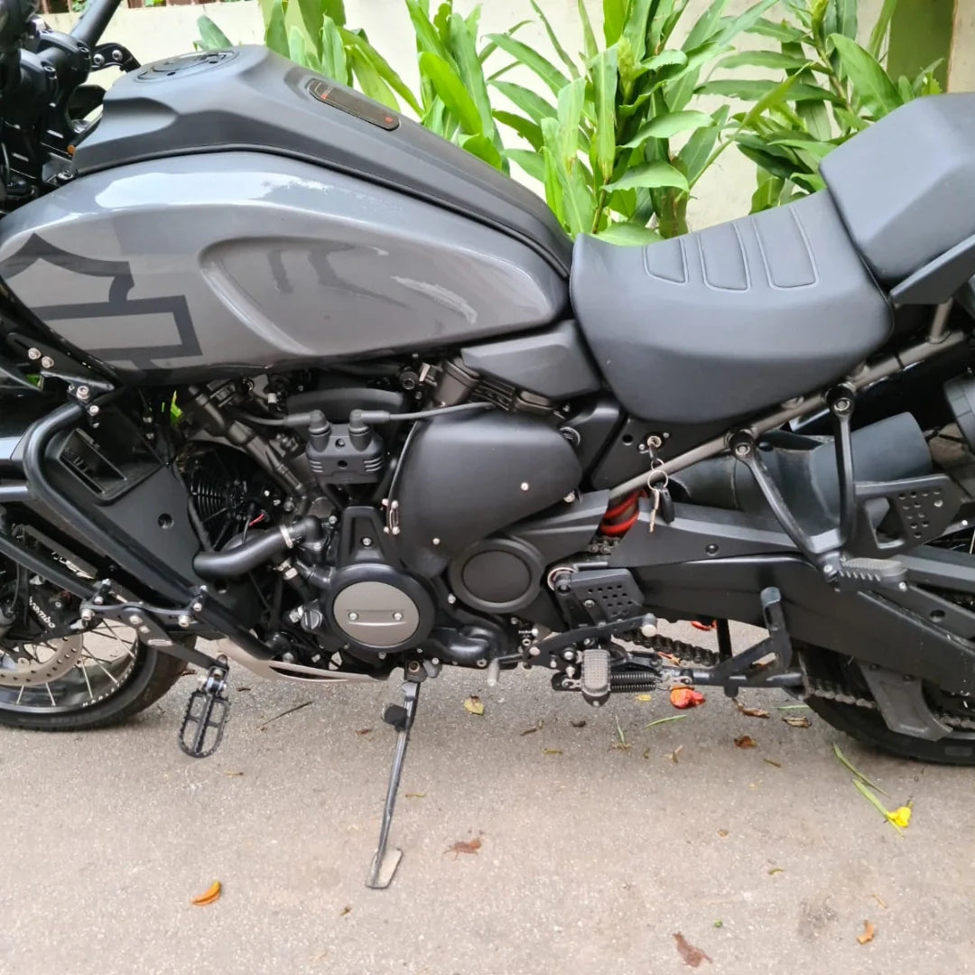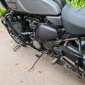 Heat Deflectors designed to protect the rider from the hot air draft emitted from radiator fan on the left side.