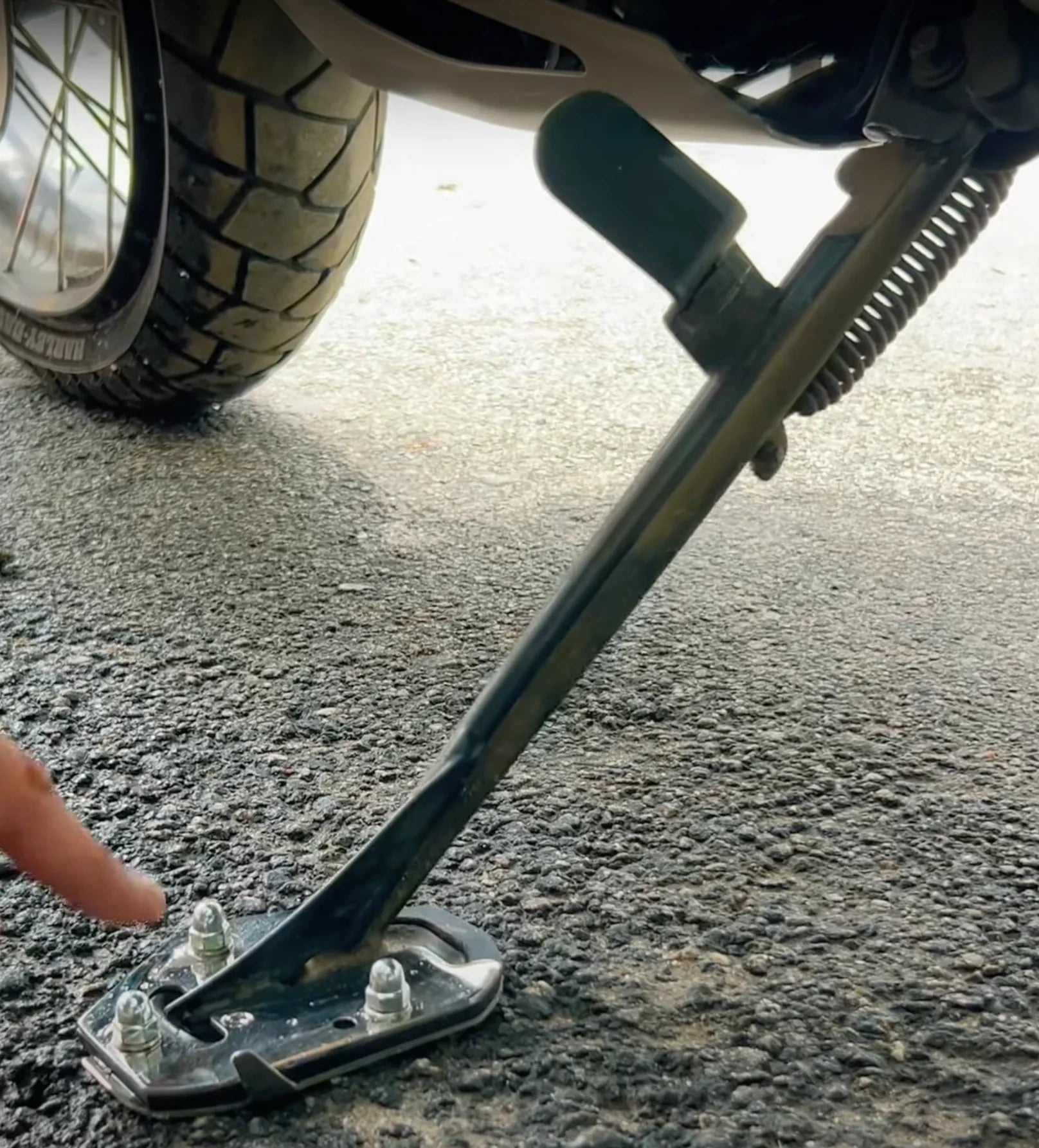 Provides a wider landing area for your bike’s side stand.