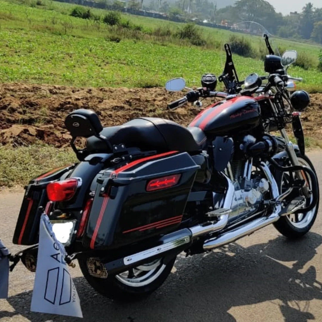 d. Chrome detail with LED – The foot board come with SS strip in the middle, and has an embedded water proof LED which glows when the bike is switched on.
