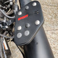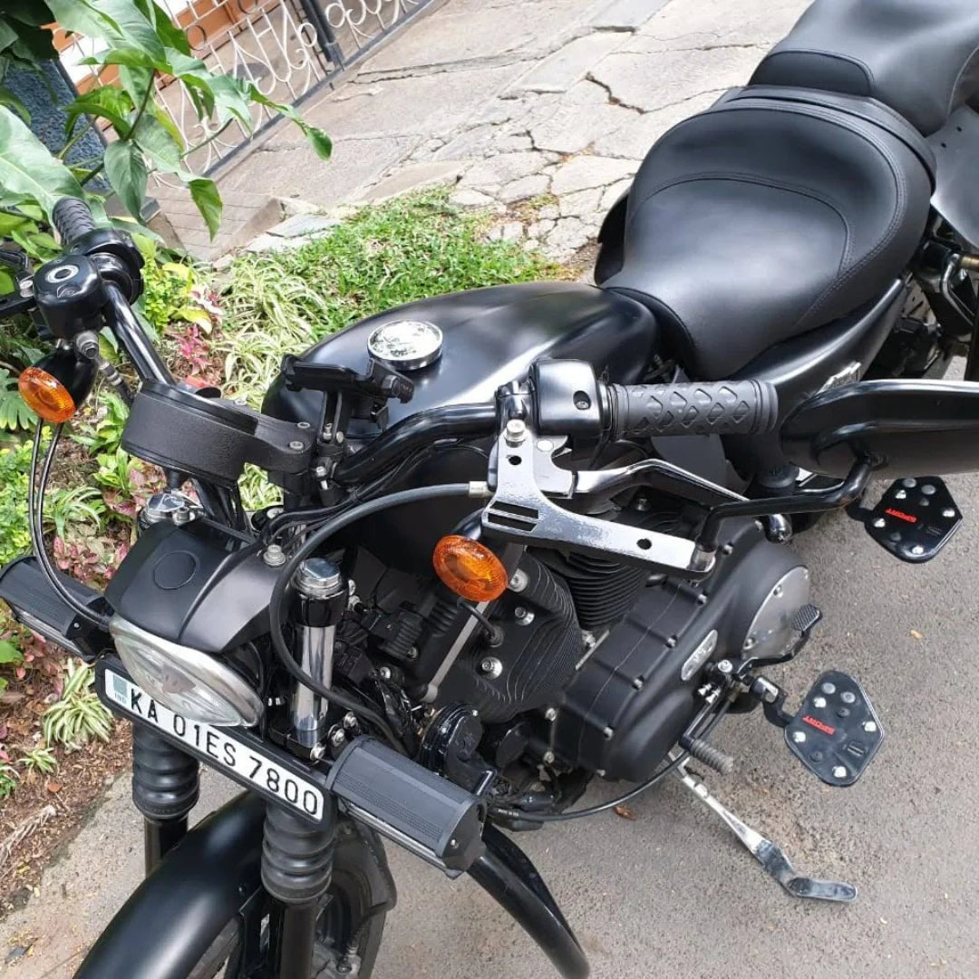 d. Chrome detail with LED – The foot board come with SS strip in the middle, and has an embedded water proof LED which glows when the bike is switched on.