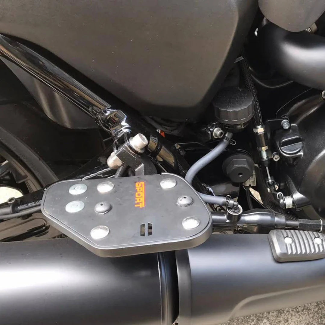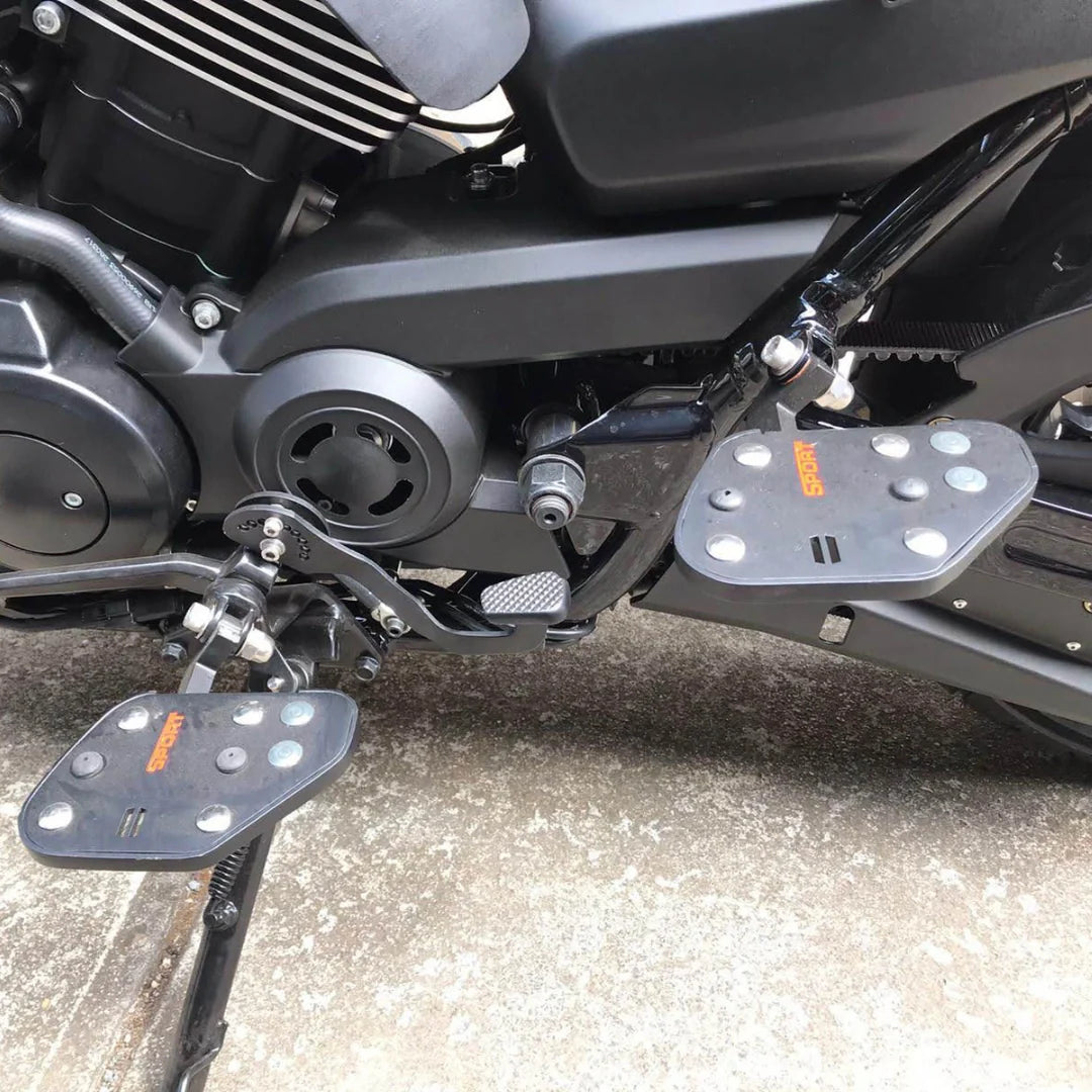 i. The rubber in this foot board is mounted on soft rubber bellows to significantly reduce the engine vibrations felt by the rider