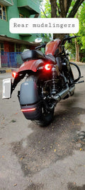• Mudslinger for rear wheel, arrests muck/mud/dirty water from the road. Does not allow muck to hit pillion or rider’s back.