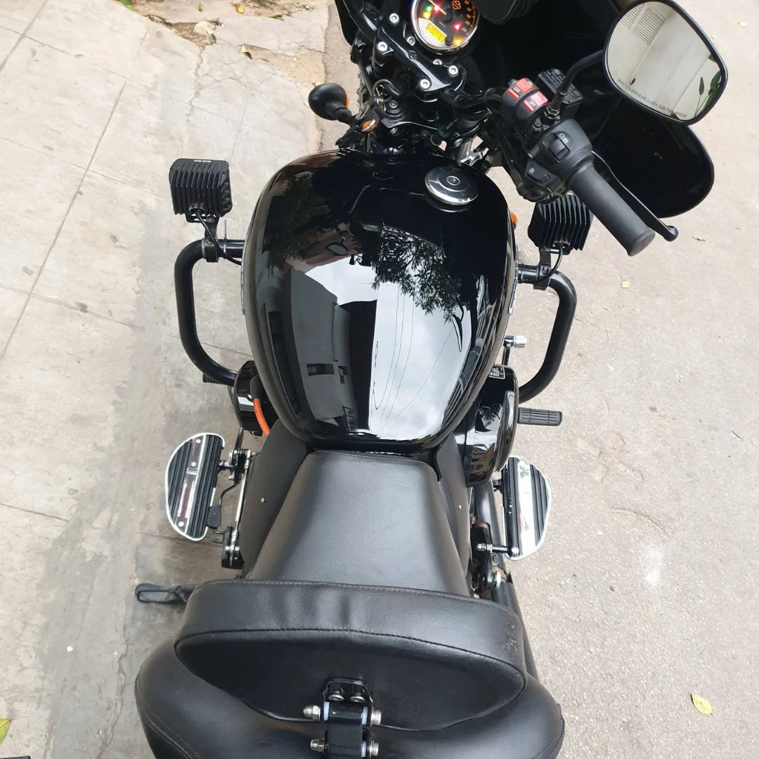 • Especially when a rider’s motorcycle has forward foot controls footboards make more sense than foot pegs. Since in FFC setting, rider’s feet are extended, and the pivot point of the feet changes to the heel as opposed to, between heel and toe in case of mid mounts. Footboards are more comfortable when you pivot your feet at your heel.