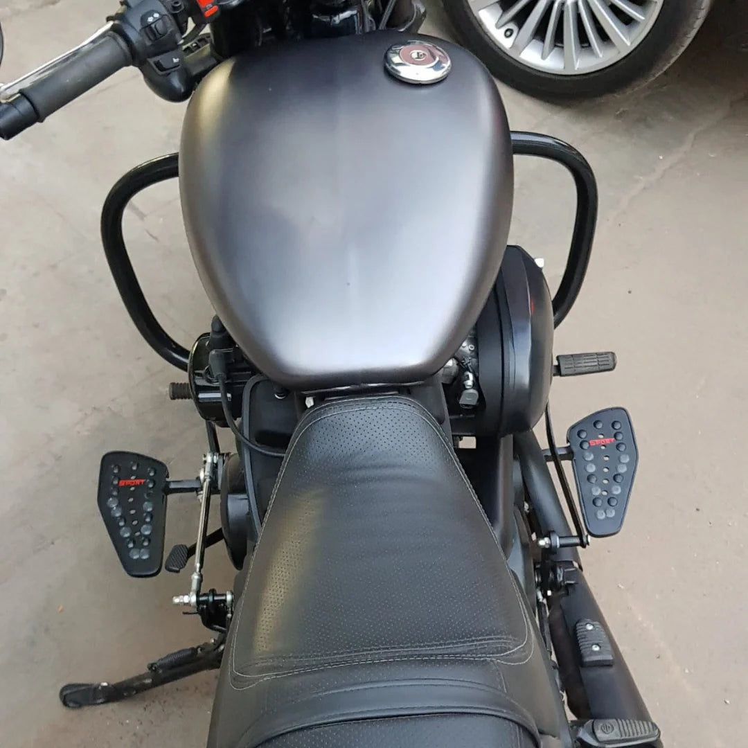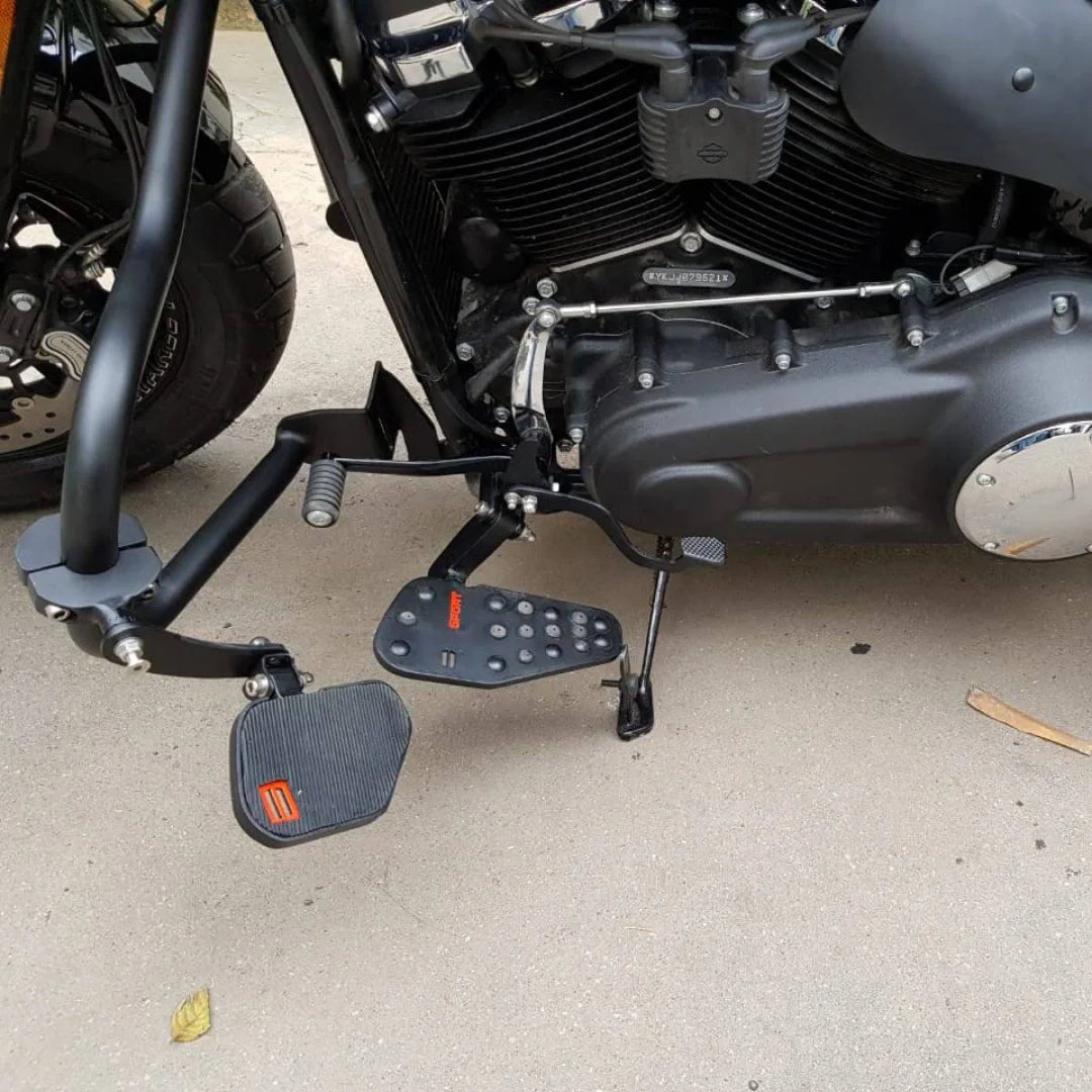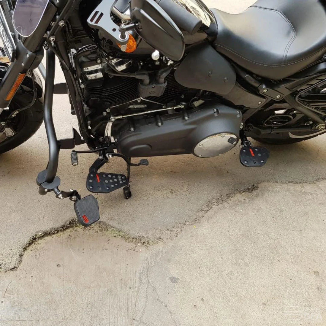 • Especially when a rider’s motorcycle has forward foot controls footboards make more sense than foot pegs. Since in FFC setting, rider’s feet are extended, and the pivot point of the feet changes to the heel as opposed to, between heel and toe in case of mid mounts. Footboards are more comfortable when you pivot your feet at your heel.