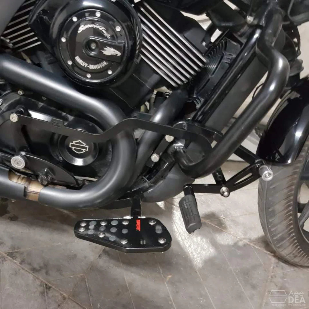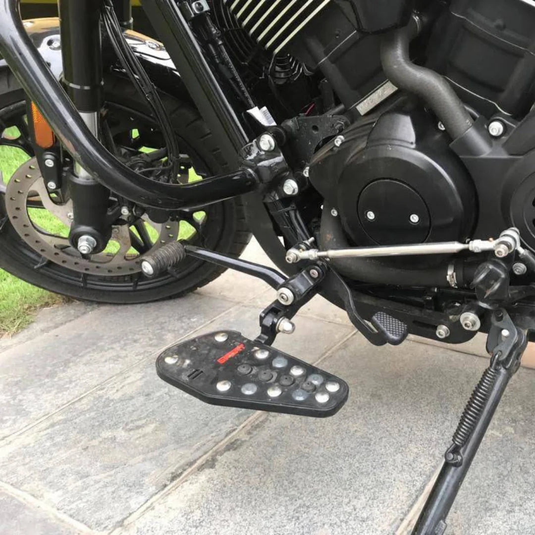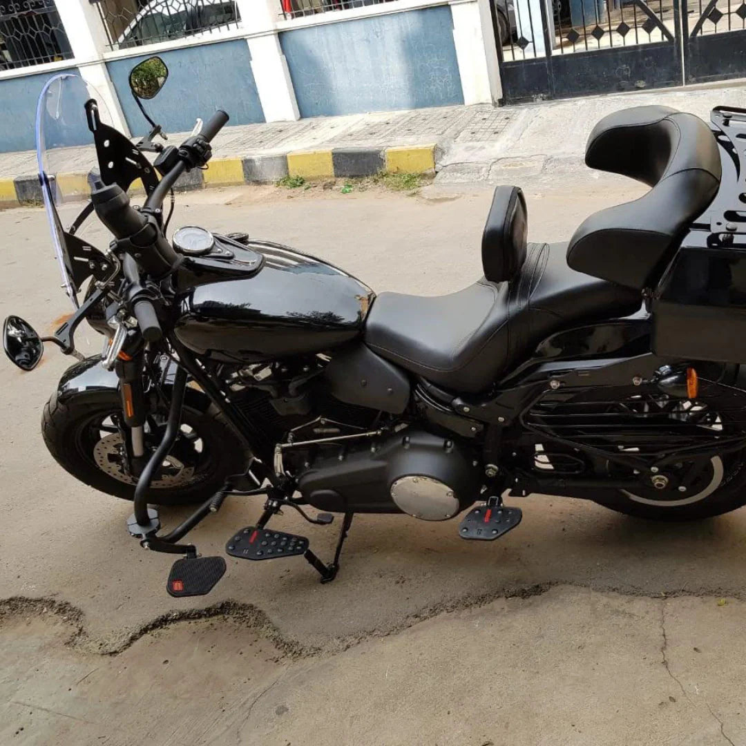 • Especially when a rider’s motorcycle has forward foot controls footboards make more sense than foot pegs. Since in FFC setting, rider’s feet are extended, and the pivot point of the feet changes to the heel as opposed to, between heel and toe in case of mid mounts. Footboards are more comfortable when you pivot your feet at your heel.