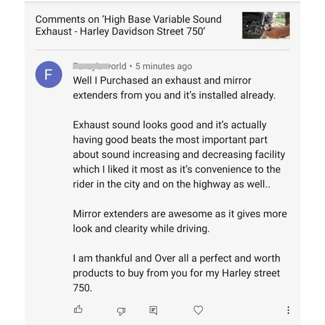 1. The exhaust is designed keeping in mind engine’s stock volumetric efficiency. Our exhaust does not make difference to the bike performance (enhance/reduce) in terms of pick up, mileage, top end RPM, throttle response.