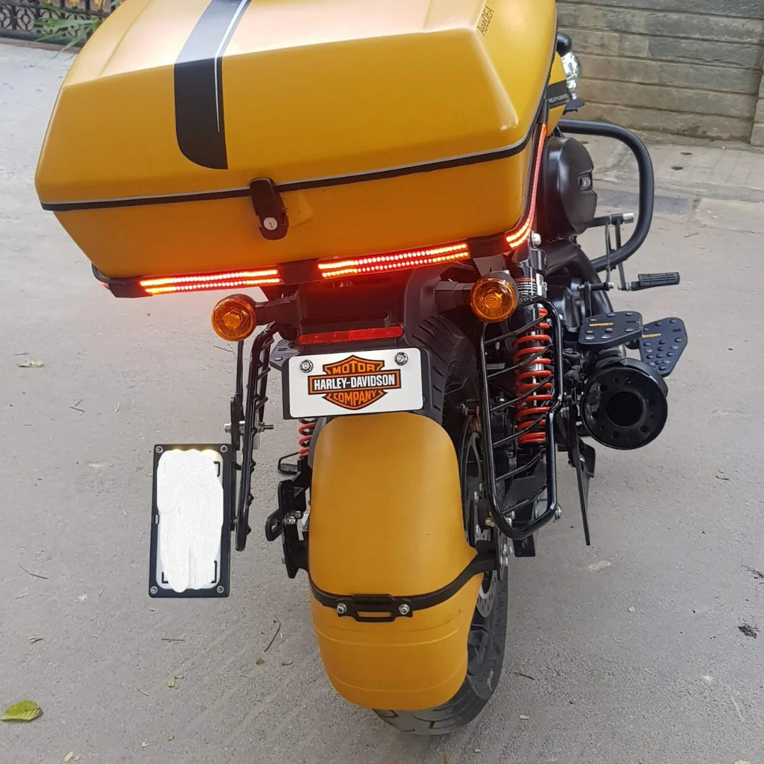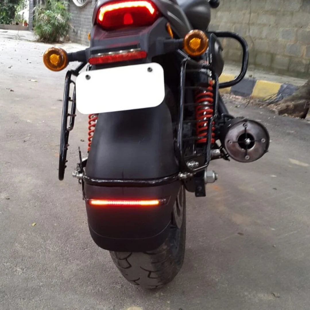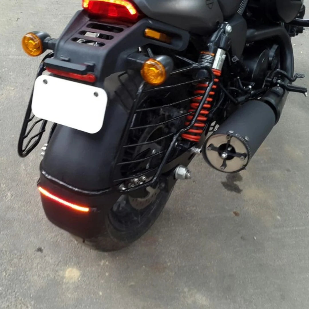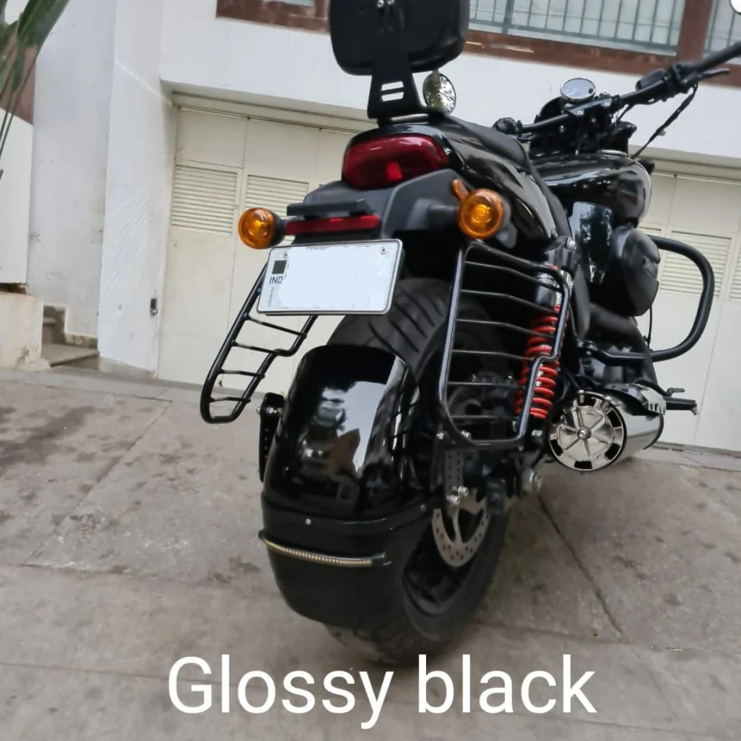 - Mudslinger for rear wheel, arrests muck/mud/dirty water from the road. Does not allow muck to hit pillion or rider’s back.