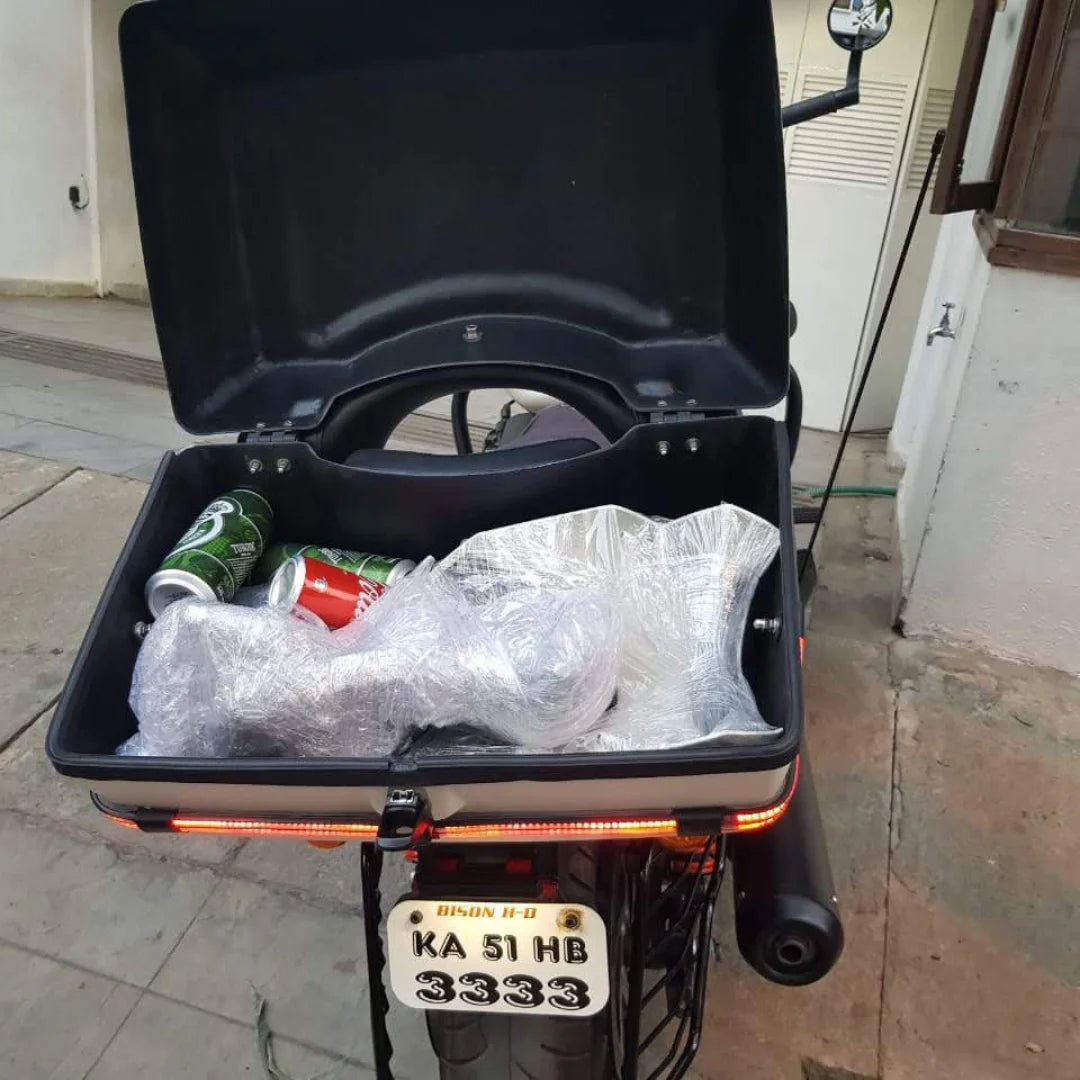 Touring Top Box is a perfect option to store your stuff and give your pillion a super comfortable ride. The box comes attached with arm rest and backrest, makes it almost like a lounging experience for pillion, great for long rides. The box lets you store your bag/ helmet/ jacket/ riding gear