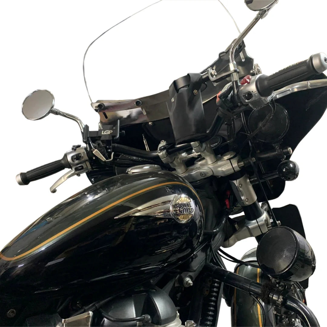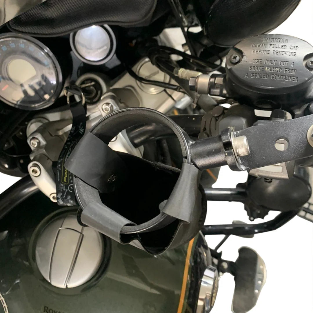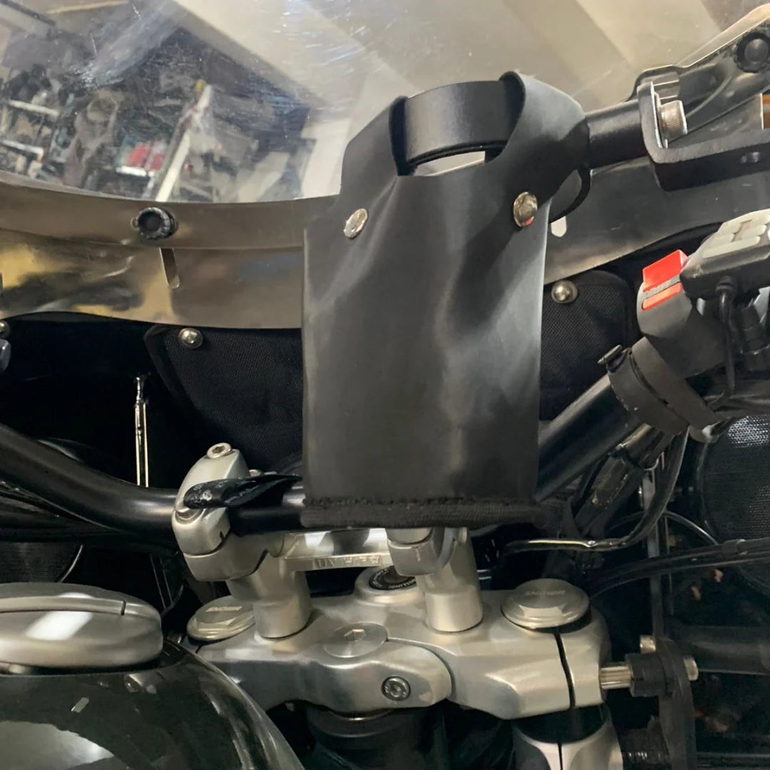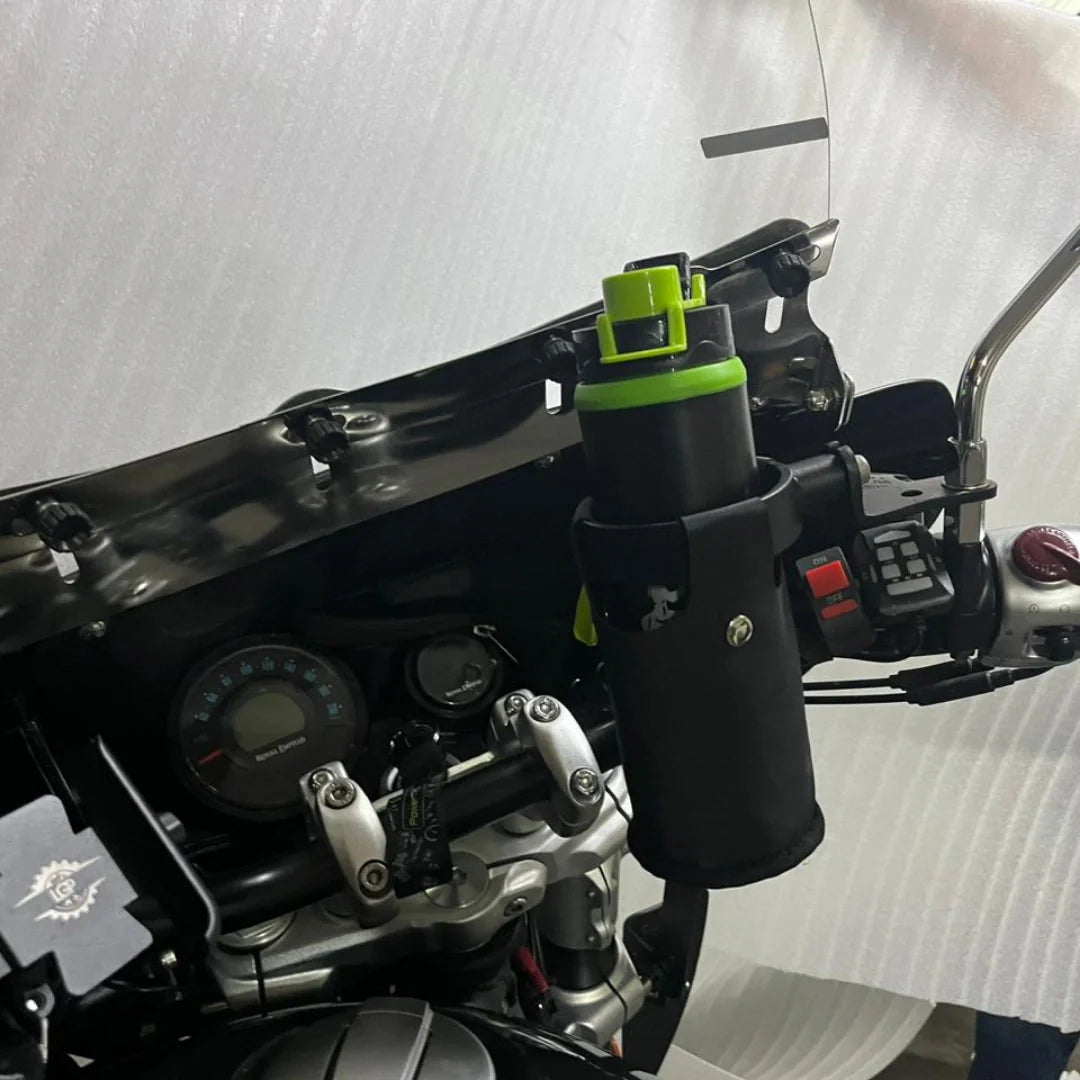 Upgrade your Royal Enfield Super Meteor 650 with the AeeDEA Bottle Holder – a High Strength Steel accessory designed for both durability and style. Our carefully crafted bottle holder features a chic leatherette pouch, perfect for securing your bottle, and effortlessly mounts on the handlebar for convenient access during your rides.