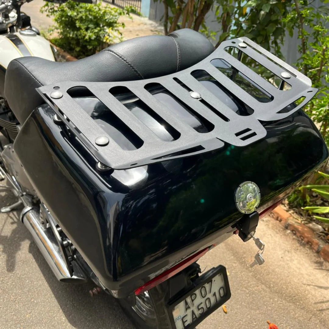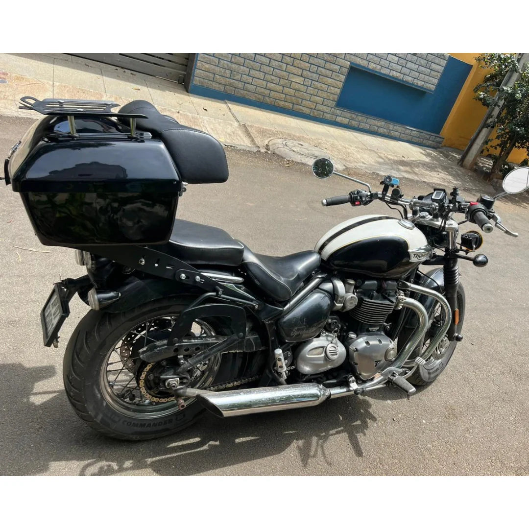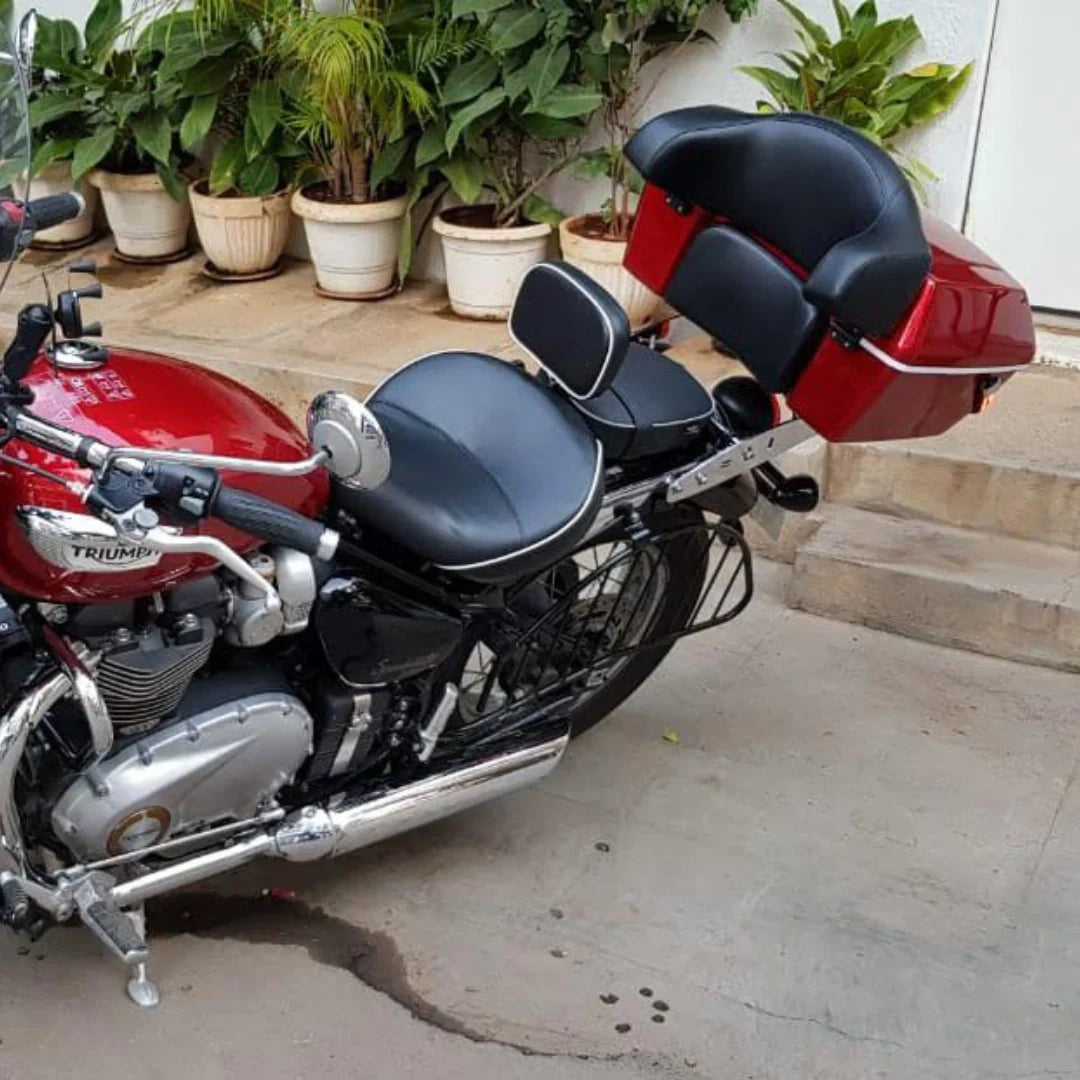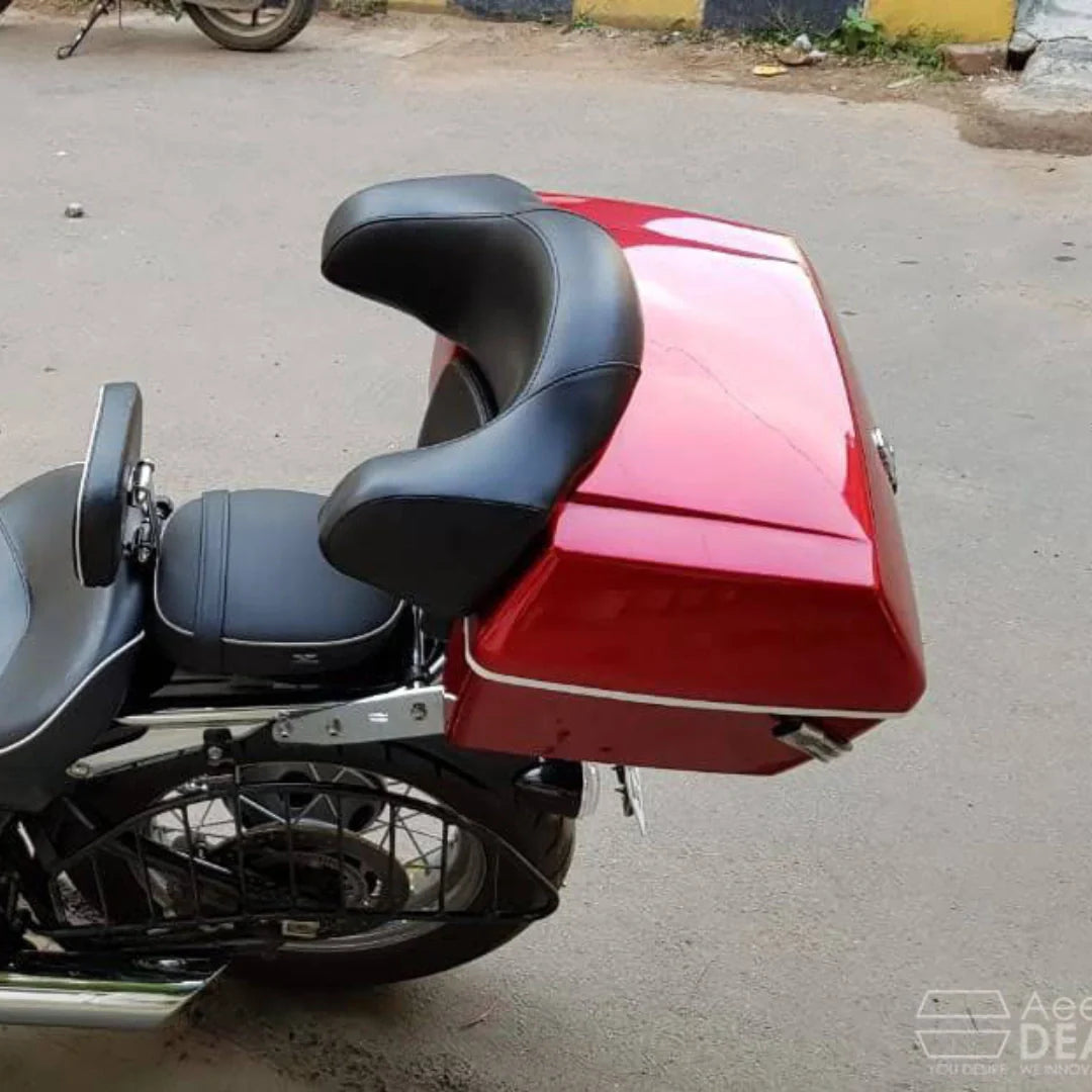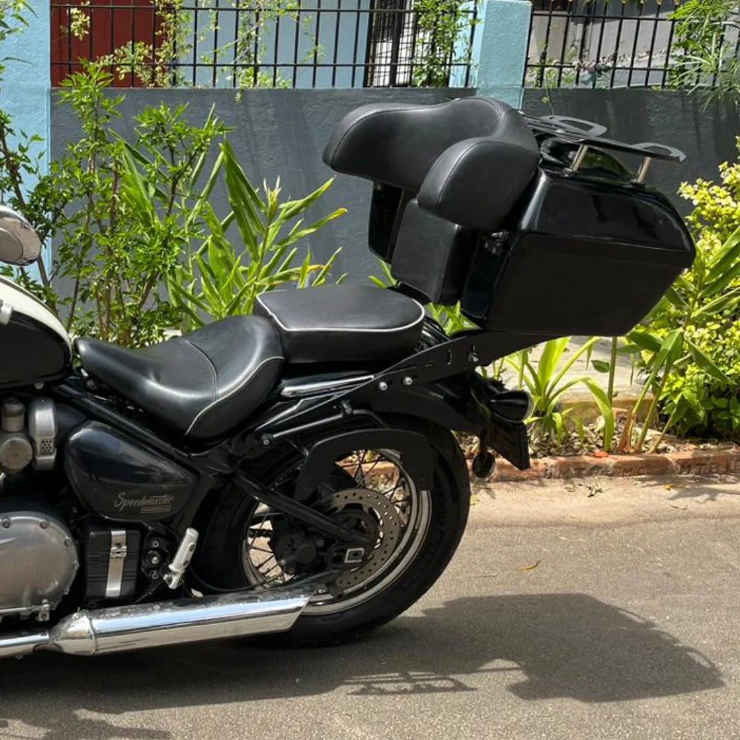 Touring Top Box is a perfect option to store your stuff and give your pillion a super comfortable ride. The box comes attached with arm rest and backrest, makes it almost like a lounging experience for pillion, great for long rides. The box lets you store your bag/ helmet/ jacket/ riding gear.